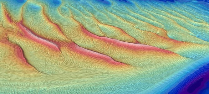 The Foveaux Straight is a notoriously rough stretch of water, however the survey team were pleasantly surprised with a great run of weather experienced over the summer months. Some amazing seafloor sand wave features were detected during the survey caused by the strong currents through the straight.