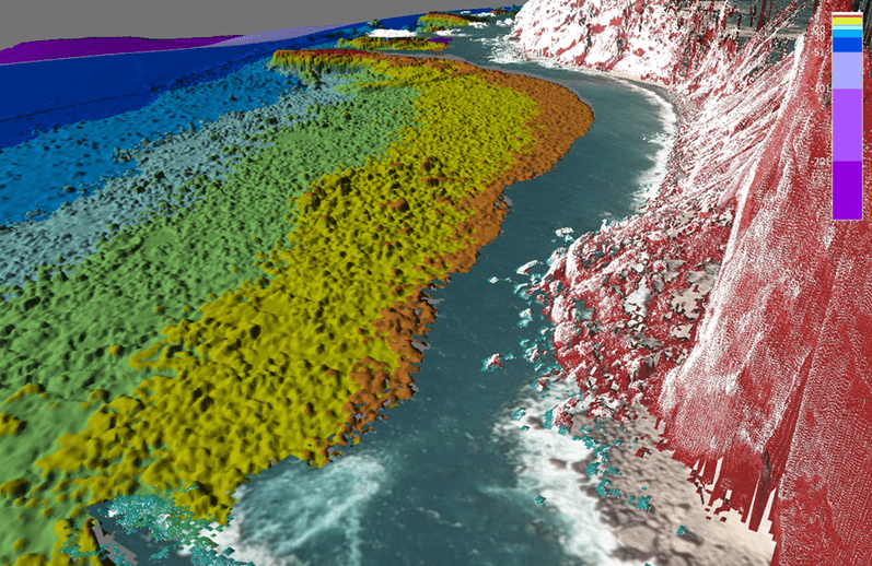 The multibeam and mobile laser scanning data was combined to provide a data set that will aid with identifying coastline features.