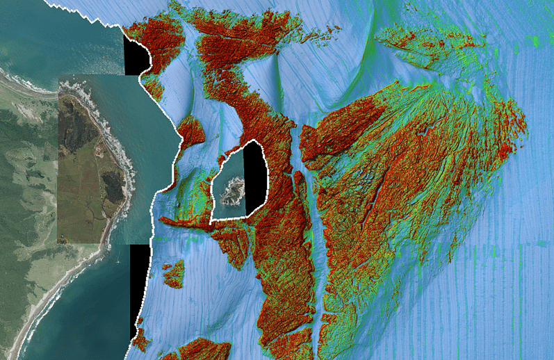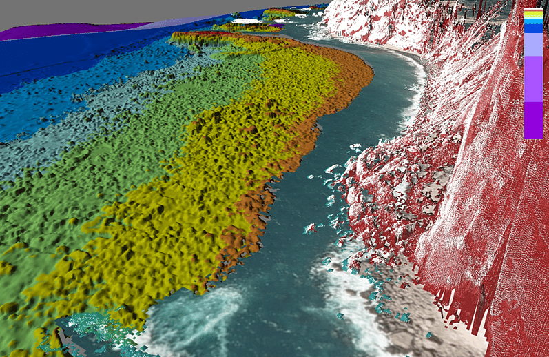 The multibeam and mobile laser scanning data was combined to provide a data set that will aid with identifying coastline features.