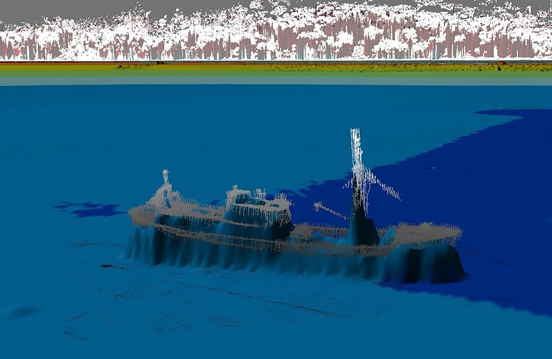 The wreck of FV Boston Seafire a 37metre fishing vessel that was scuttled 2008 was also clearly delineated as a significant bathymetric feature.